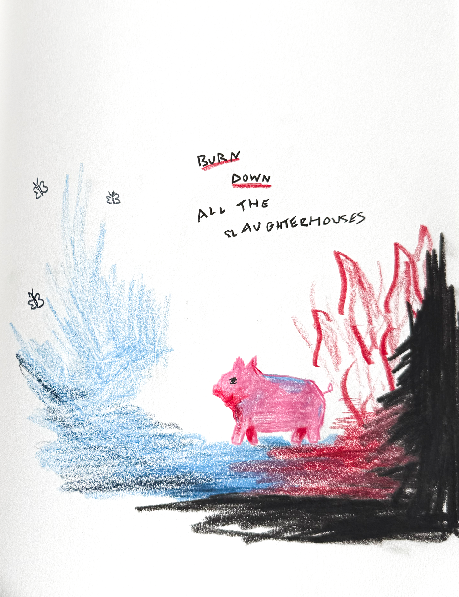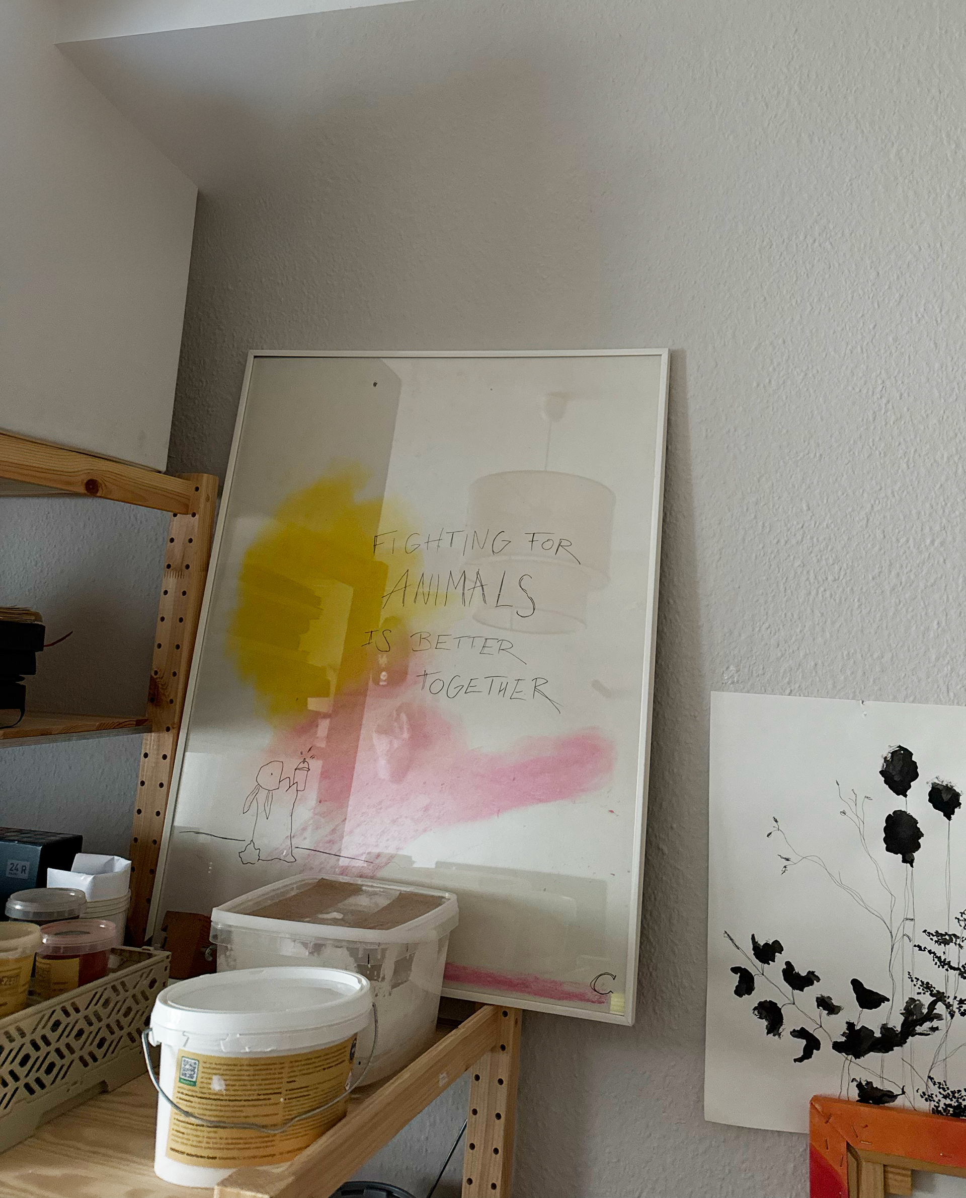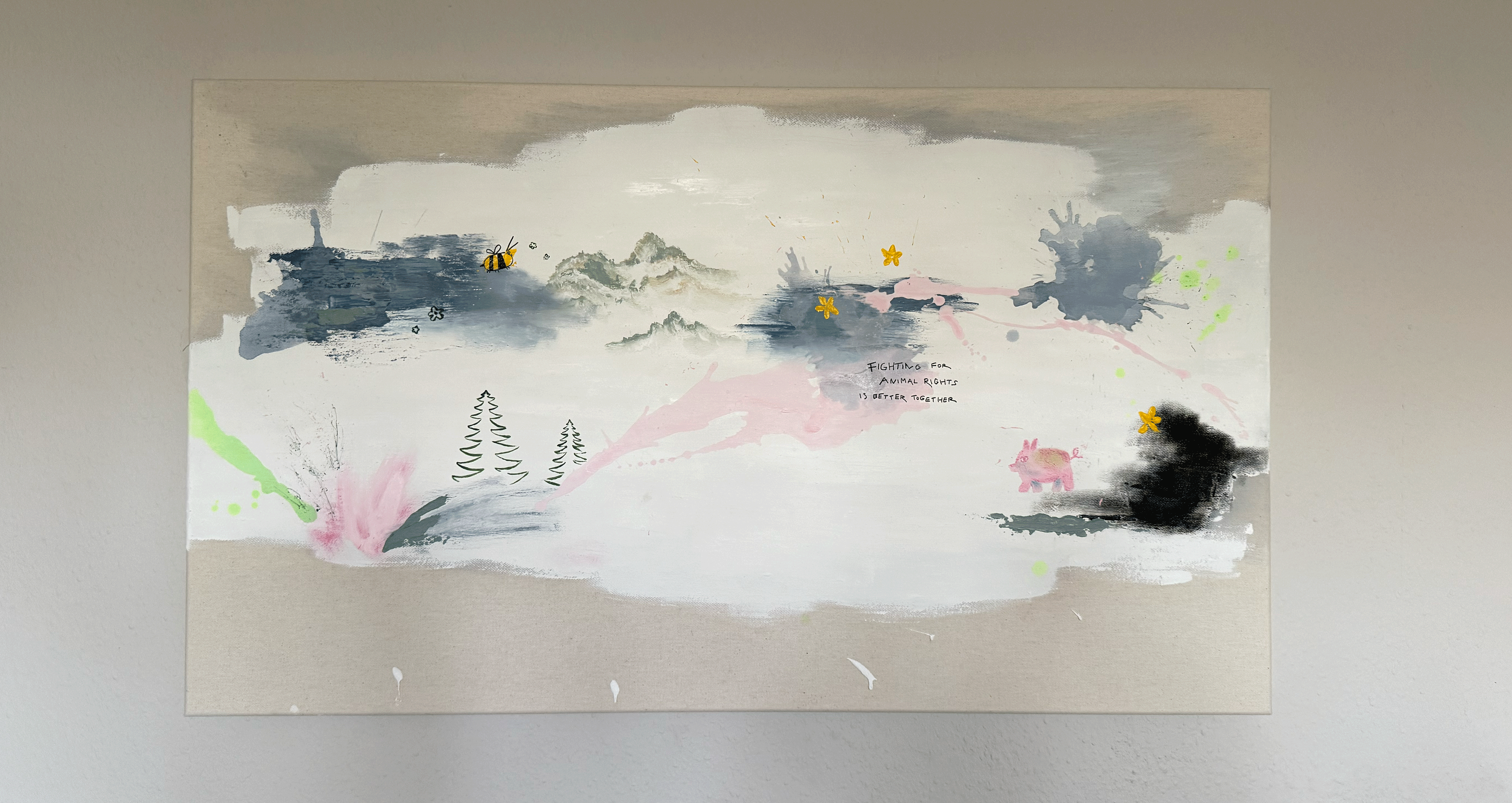 Uncaged Collective is a collection of diverse artworks that engage with critical themes, particularly issues of animal ethics. Conceptually, the works intentionally contrast with a light, playful visual style. They are created across various media and with a range of techniques: sometimes on canvas, sometimes on paper, and sometimes as T-shirt prints. Materials such as chalk, colored pencils, and paint are used throughout. This project is a true passion of mine, as I aim to raise awareness of important issues and existing inequalities in our world in a playful and accessible way.
